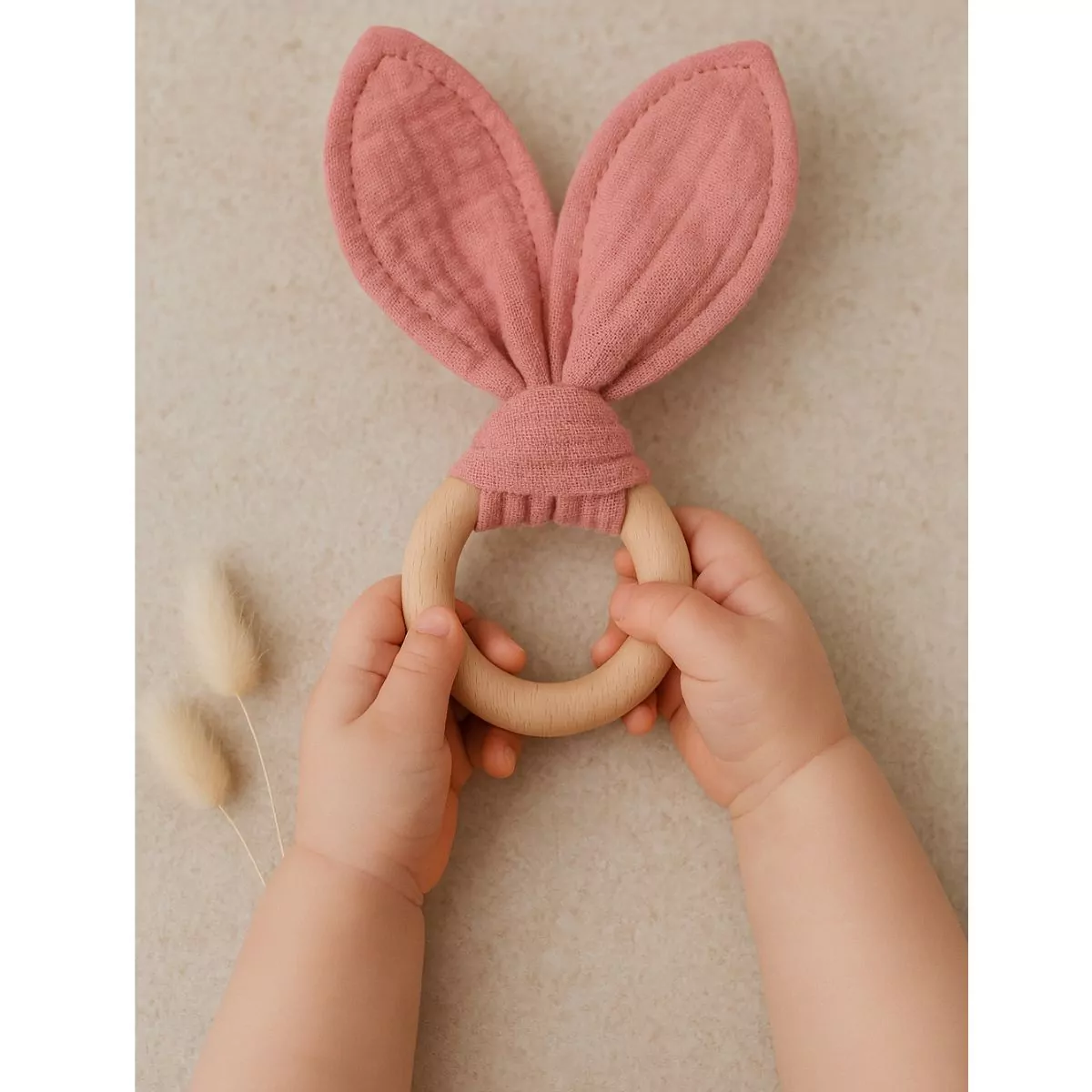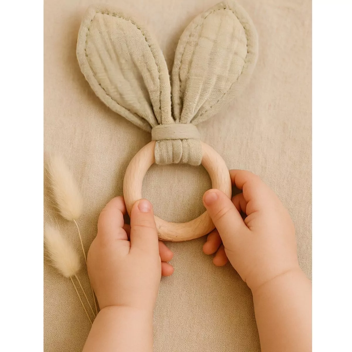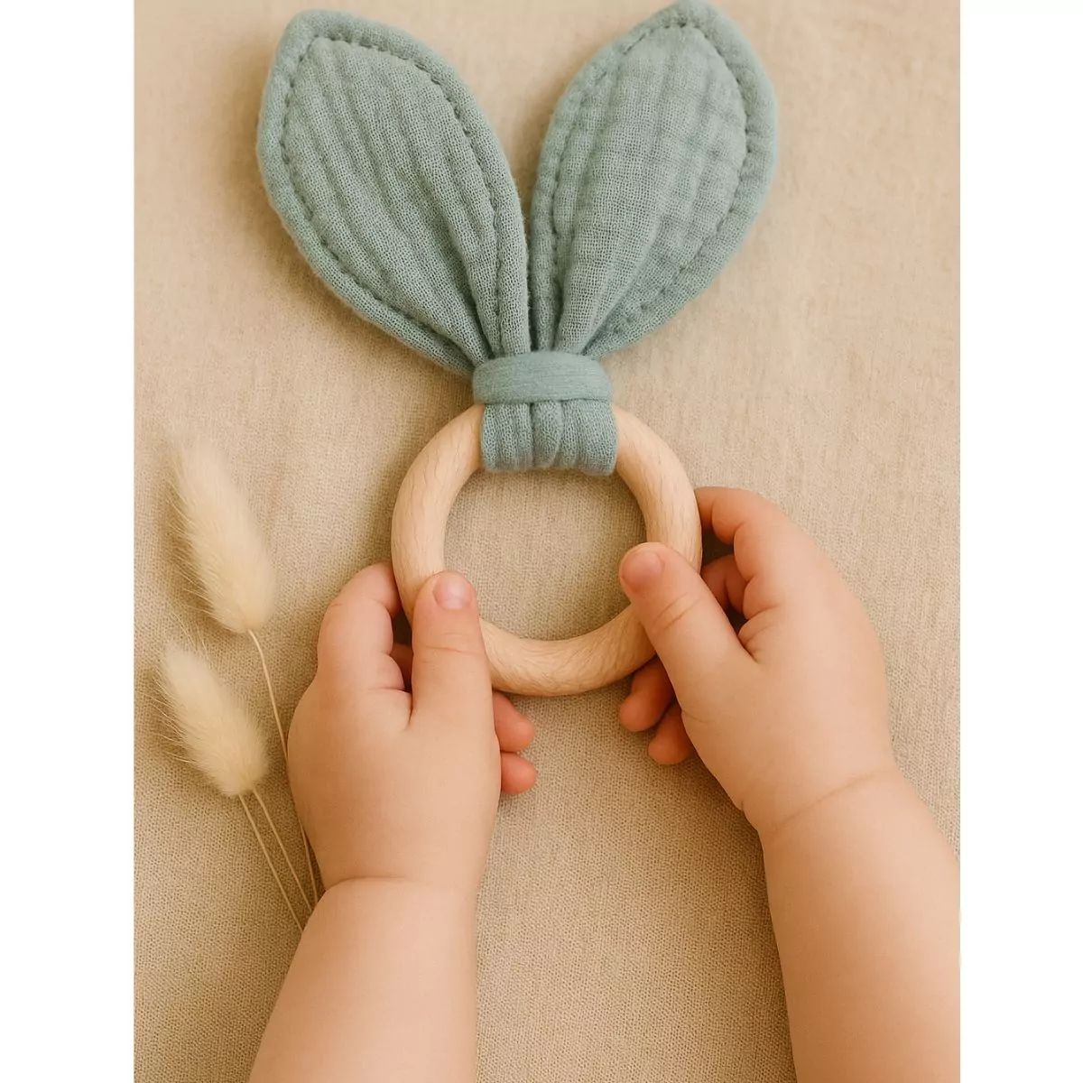 L’anneau et hochet de dentition est l’accessoire parfait pour soulager les gencives douloureuses de bébé pendant la poussée dentaire. Conçu avec des matériaux naturels, tels que le bois et la gaze de coton, il aide à développer les sens de bébé tout en étant doux pour ses petites mains. Facile à saisir et à manipuler, ce petit anneau hochet deviendra rapidement le meilleur ami de bébé, l’accompagnant dans ses moments de détente tout en favorisant son bien-être. Disponible en blanc, beige, vert et rose, il s’intègre harmonieusement à l’univers doux et naturel de bébé.