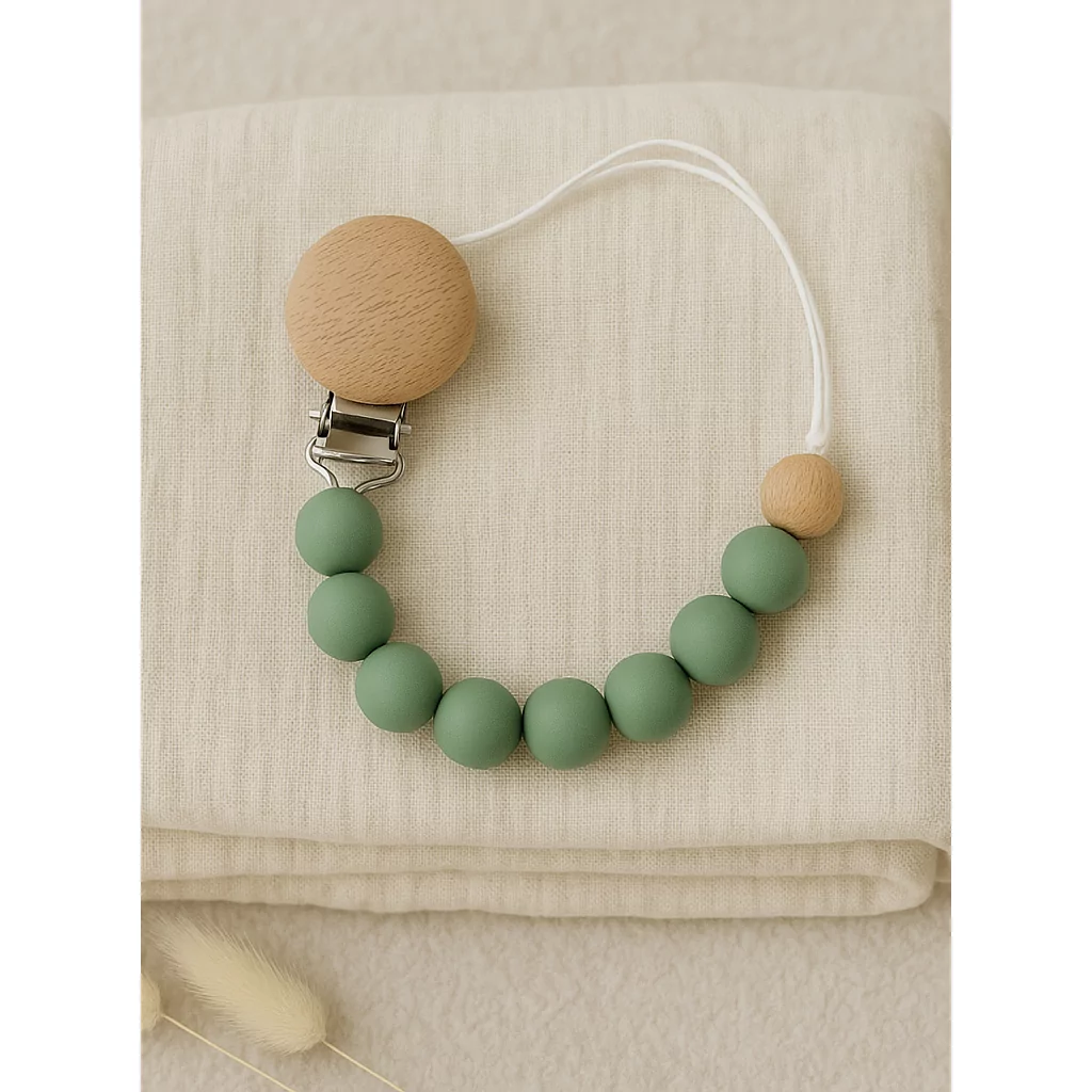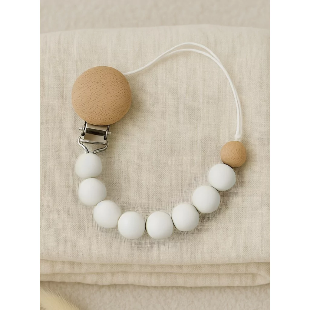 Cette attache tétine est un accessoire pratique et fonctionnel pour bébé. Grâce à sa facilité de clip, elle permet à bébé de garder sa tétine près de lui tout au long de la journée. Fabriquée à partir de bois naturel et de silicone doux, elle sert également à apaiser les gencives de bébé lorsqu’il fait ses dents. Disponible en blanc, beige, vert et rose, cette attache tétine combine confort, sécurité et praticité, tout en offrant une solution simple pour ne jamais perdre la tétine de bébé.