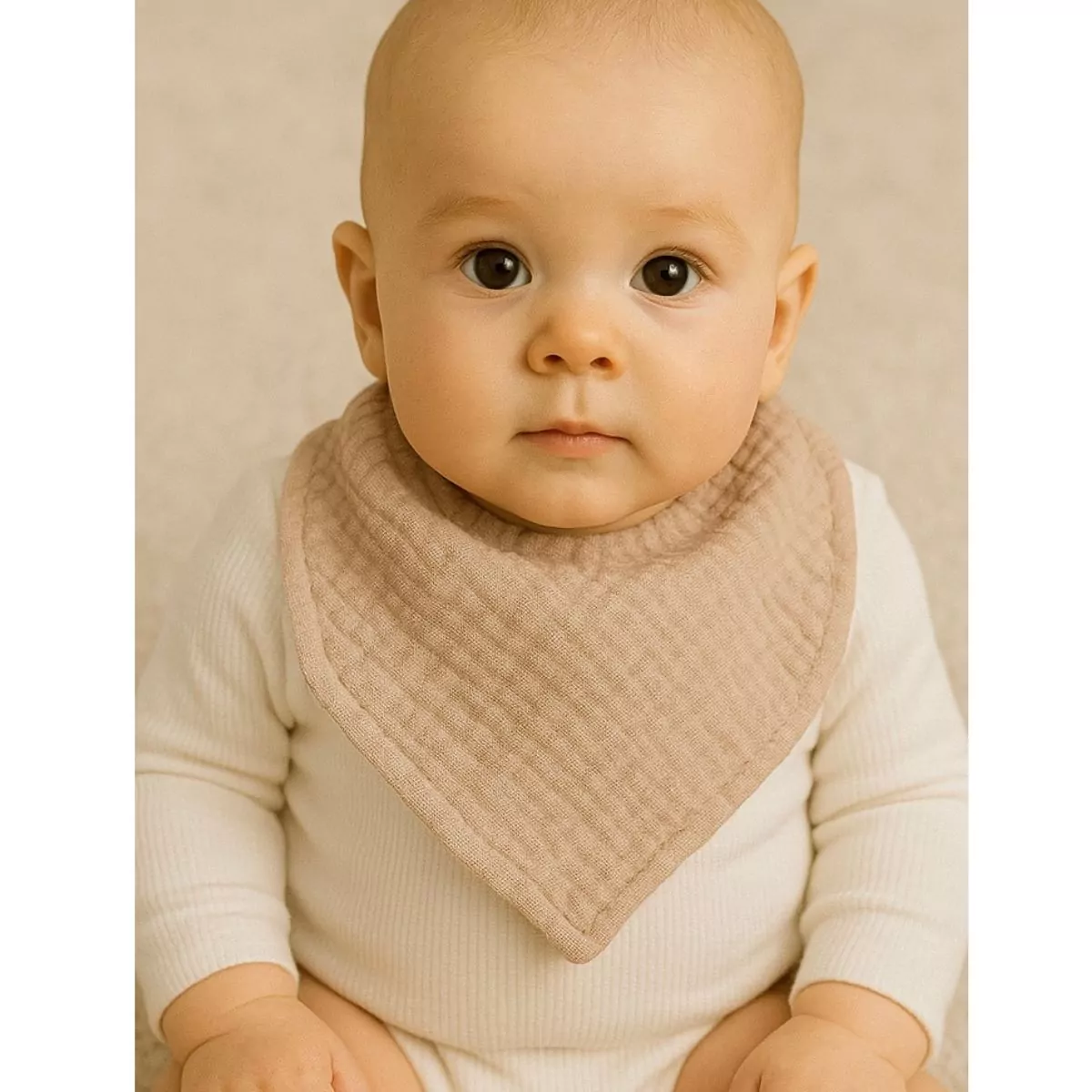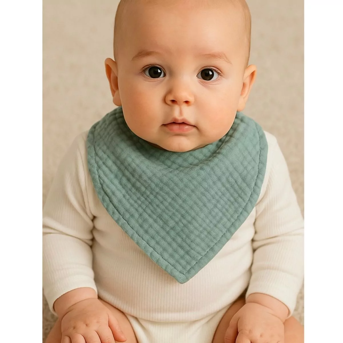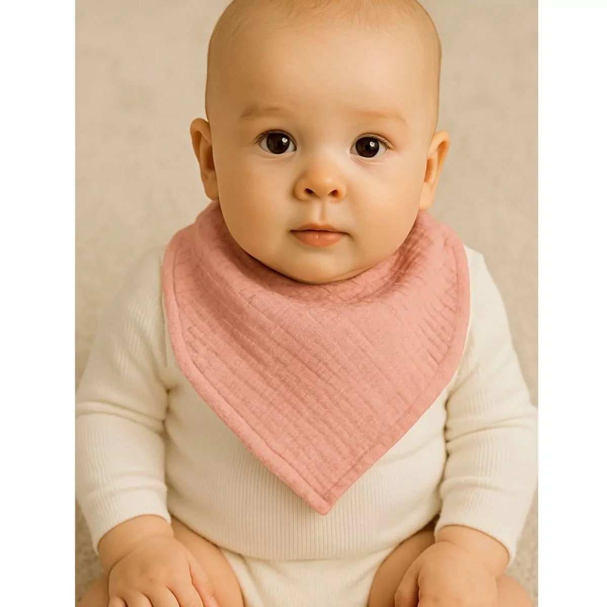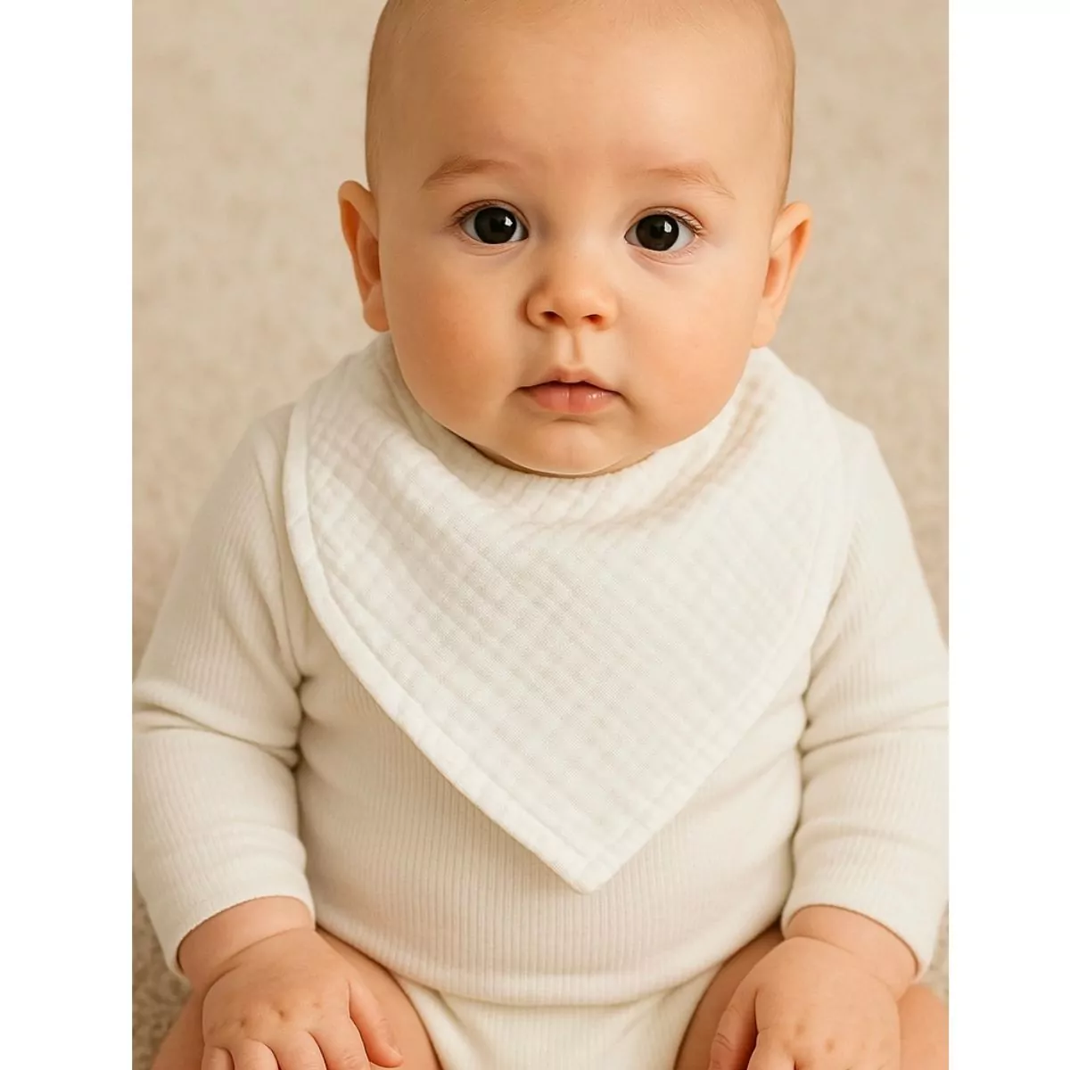 Ce bavoir triangle est idéal pour accompagner bébé lors de ses biberons ou repas. Facile à attacher grâce aux boutons à pression, il reste bien en place tout au long de la journée. Sa matière en gaze de coton, douce et légère, permet d’essuyer bébé en toute délicatesse, tout en apportant confort et praticité. Disponible en blanc, beige, vert et rose, ce bavoir triangle protège non seulement les vêtements de bébé mais ajoute également une touche de charme à sa tenue.