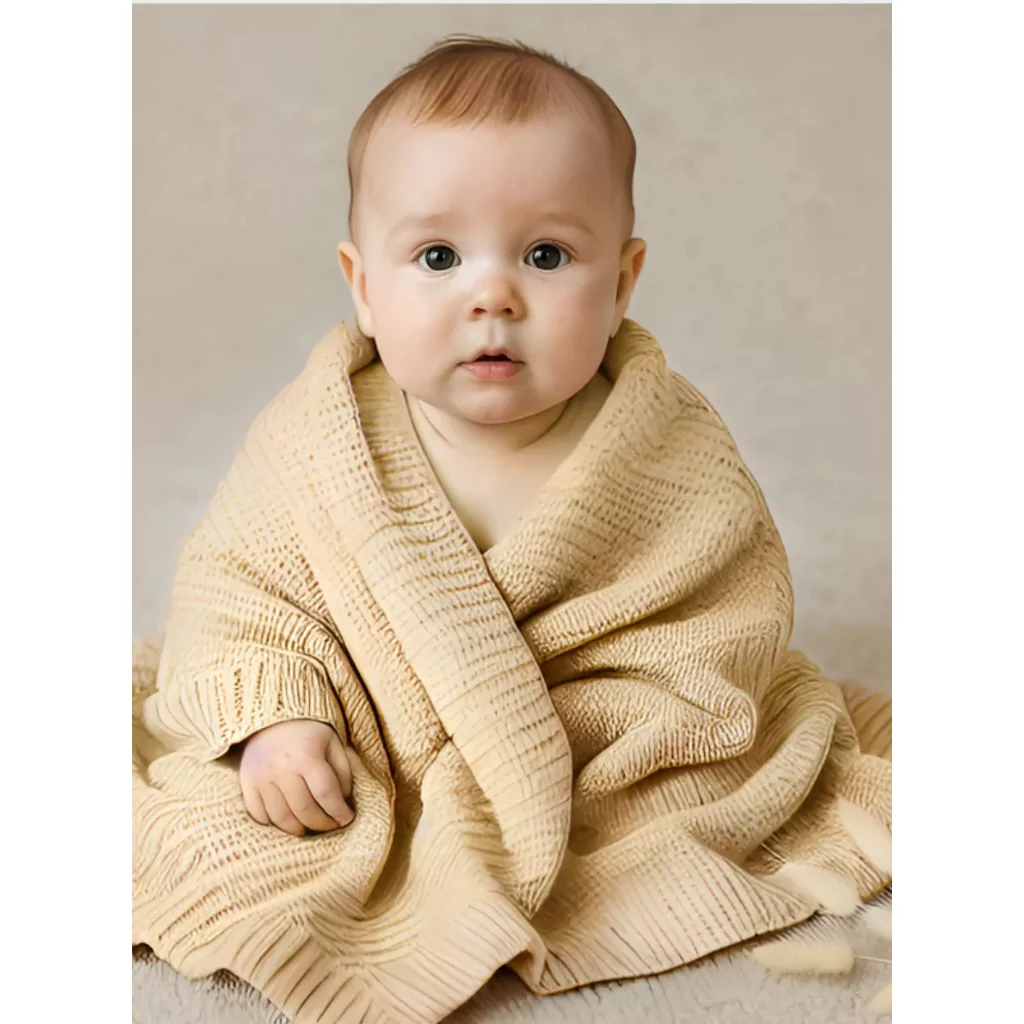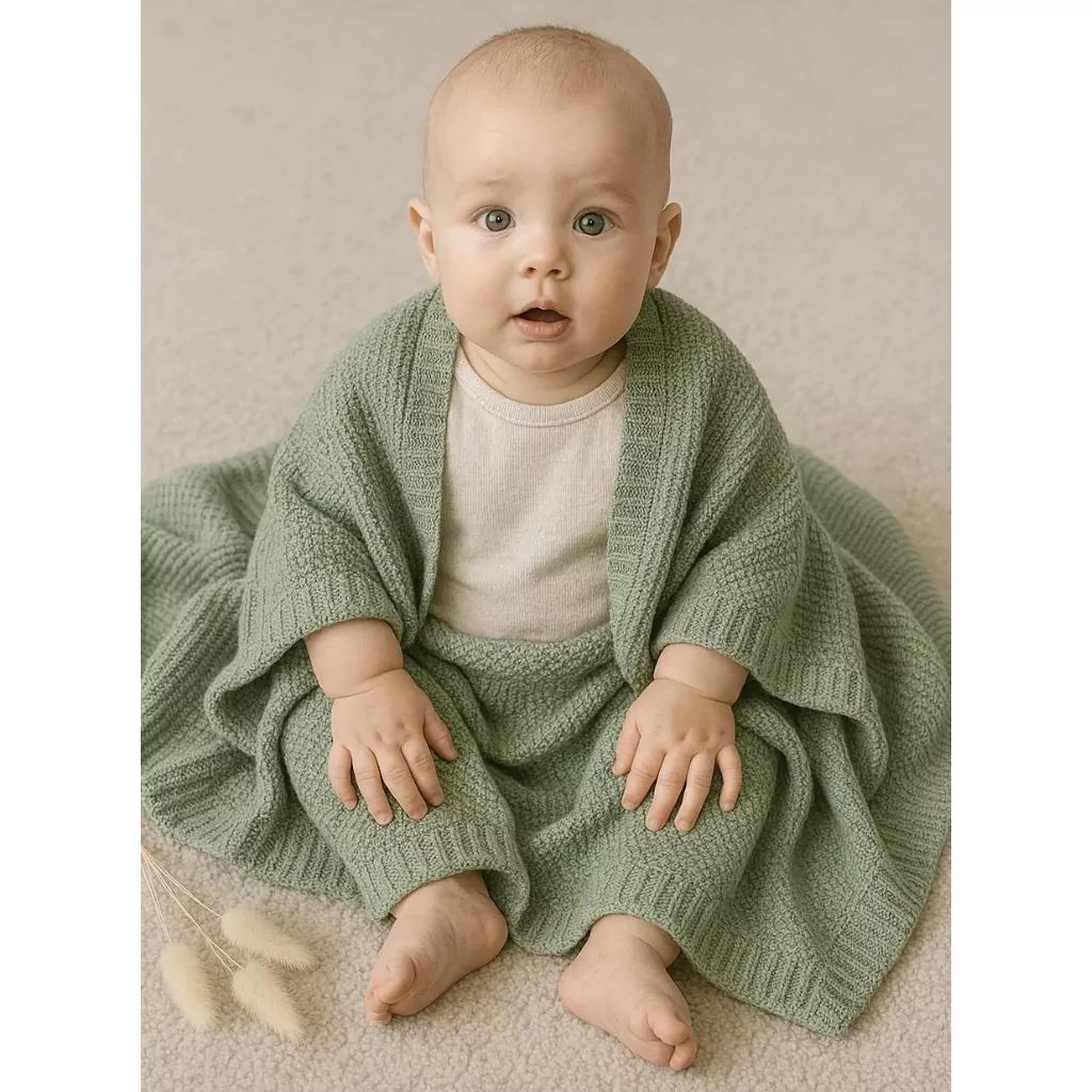 Enveloppez bébé de chaleur et de douceur avec notre couverture tricotée en coton. Sa matière souple et respirante garde votre tout-petit bien au chaud tout en légèreté, sans jamais l’alourdir.
