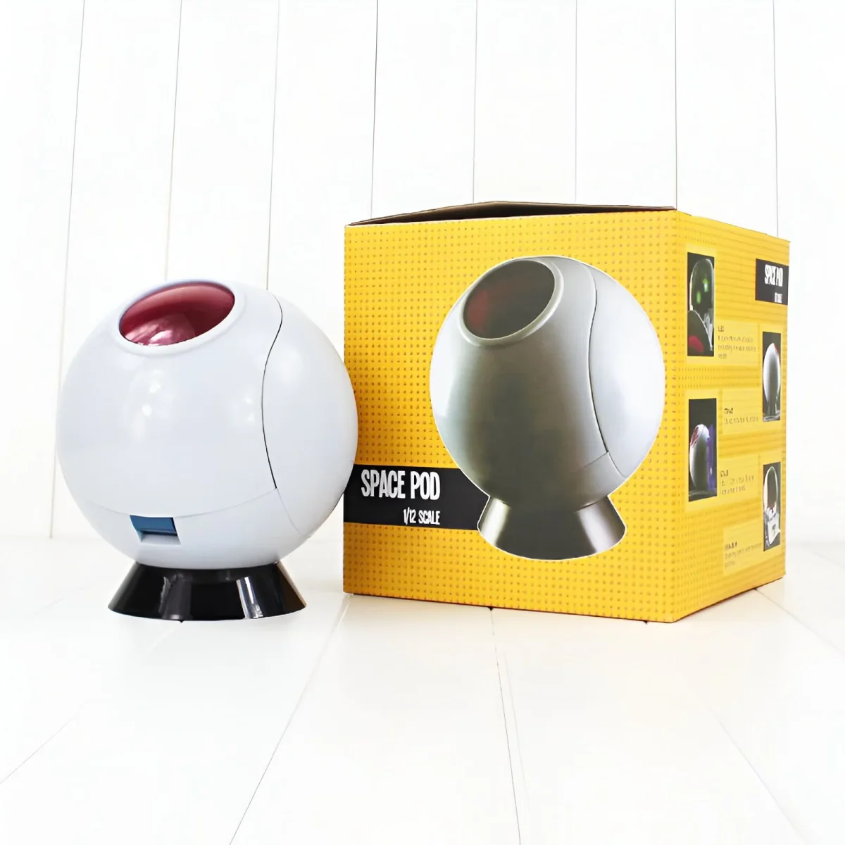 La Capsule Spatiale est également équipée d’un système d’éclairage, subtilement intégré. Les lumières diffusées par les hublots rouge viennent ajouter une dimension supplémentaire à la pièce, particulièrement dans une atmosphère sombre. L’ensemble est alimenté par des piles, permettant de la mettre en valeur sur une étagère ou dans une vitrine. La base noire assure une stabilité parfaite et permet une présentation optimale de cette pièce de collection. L’aspect global est celui d’un objet à la fois ludique et très fidèle à l’univers de Dragon Ball, ce qui en fait un élément de choix pour compléter une collection ou tout simplement pour les passionnés qui souhaitent posséder un fragment de l’aventure spatiale de nos héros.