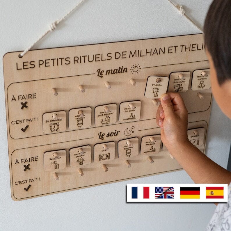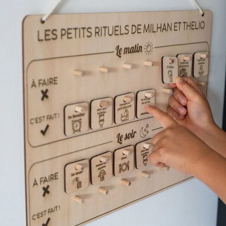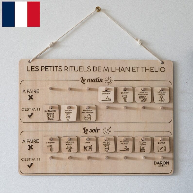 Le principe est simple : pour chaque routine réalisée, l’enfant place le symbole correspondant de « À FAIRE » à « C’EST FAIT ! ».