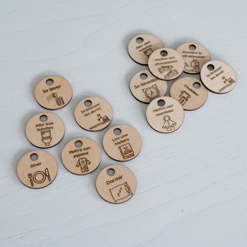 Parce que chaque famille à une routine différente, je vous laisse le choix du placement des symboles, rien n’est imposé pour ne pas perturber les habitudes de votre (vos) enfant(s). Et vous pouvez toujours écrire au dos, vos propres symbole, si jamais votre routine est différente de celle proposée ou si votre enfant doit prendre un traitement médical par exemple.