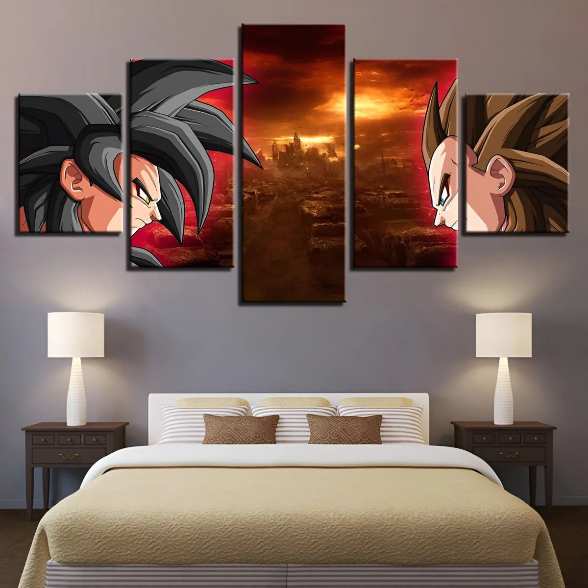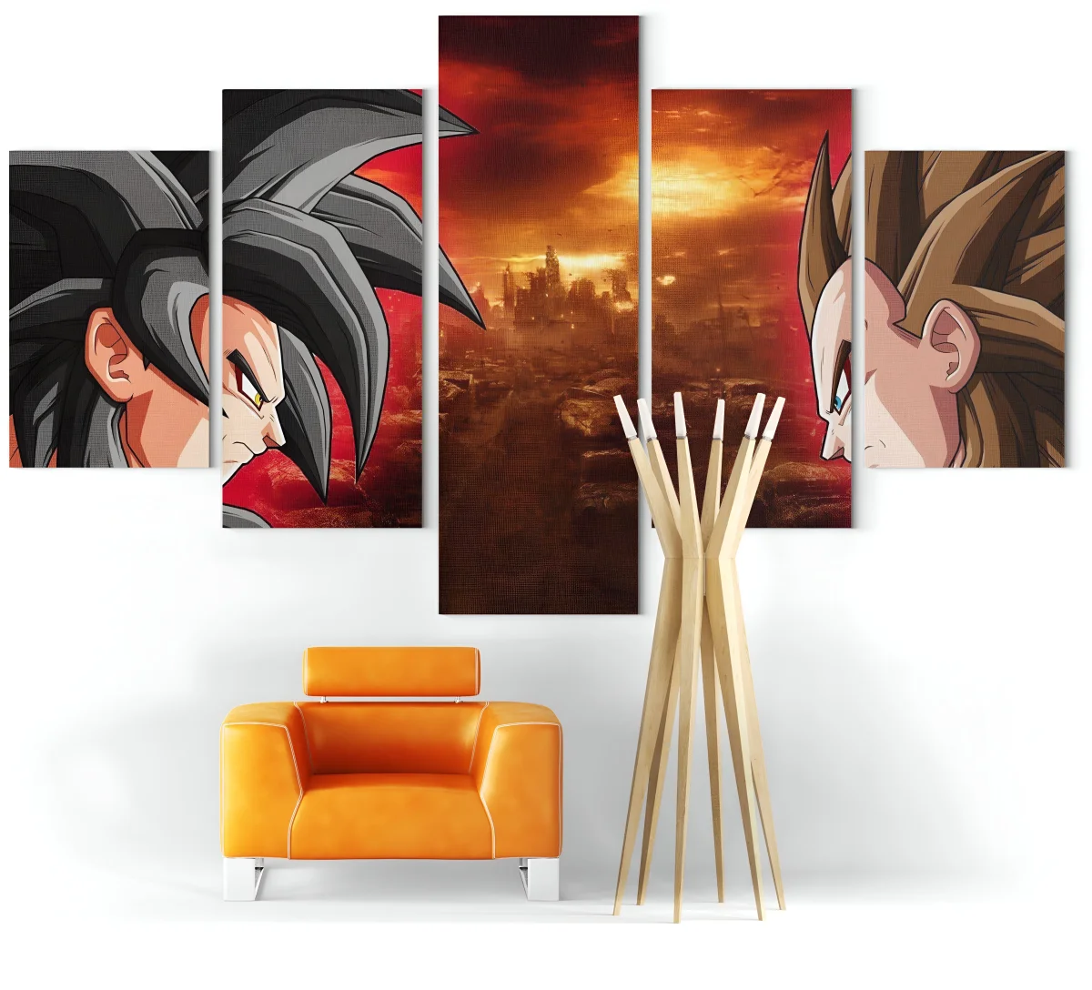 Le tableau Dragon Ball GT Goku et Vegeta SSJ4 est conçu pour devenir la pièce maîtresse de votre décoration intérieure. Son format original et sa composition sur cinq panneaux lui confèrent une présence indéniable. Que ce soit dans votre salon, votre chambre ou votre bureau, il apportera une touche d’énergie et d’aventure. Il ne manquera pas de susciter la curiosité et l’admiration de tous ceux qui le verront.