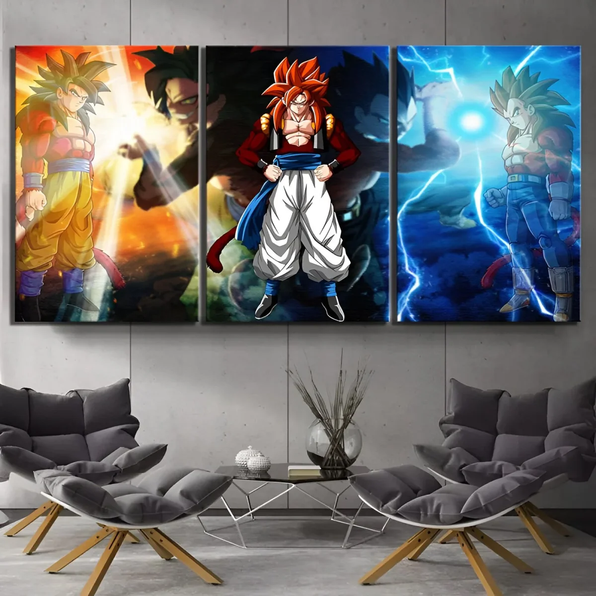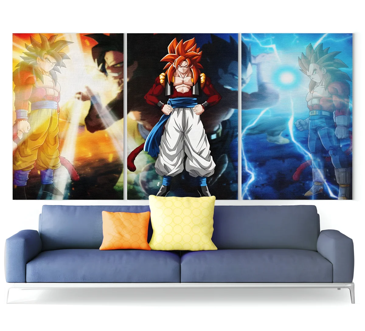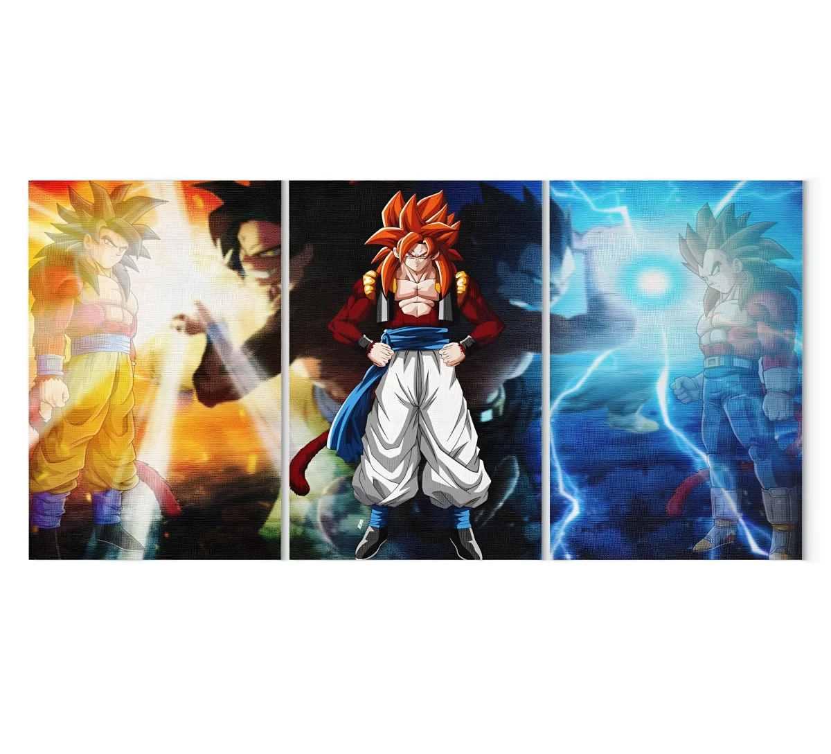 Chaque détail de la transformation en Super Saiyan 4 est mis en valeur, du pelage rouge aux yeux jaunes. Le choix de l’agencement triptyque offre une immersion totale dans l’univers de Dragon Ball, presque comme si le spectateur se trouvait aux premières loges d’un affrontement épique. Ce tableau est une invitation à revivre les sensations fortes de la saga, tout en apportant une touche de caractère à votre intérieur. Le soin apporté à la réalisation est un gage de qualité pour tout collectionneur de pièces issues du monde Dragon Ball.