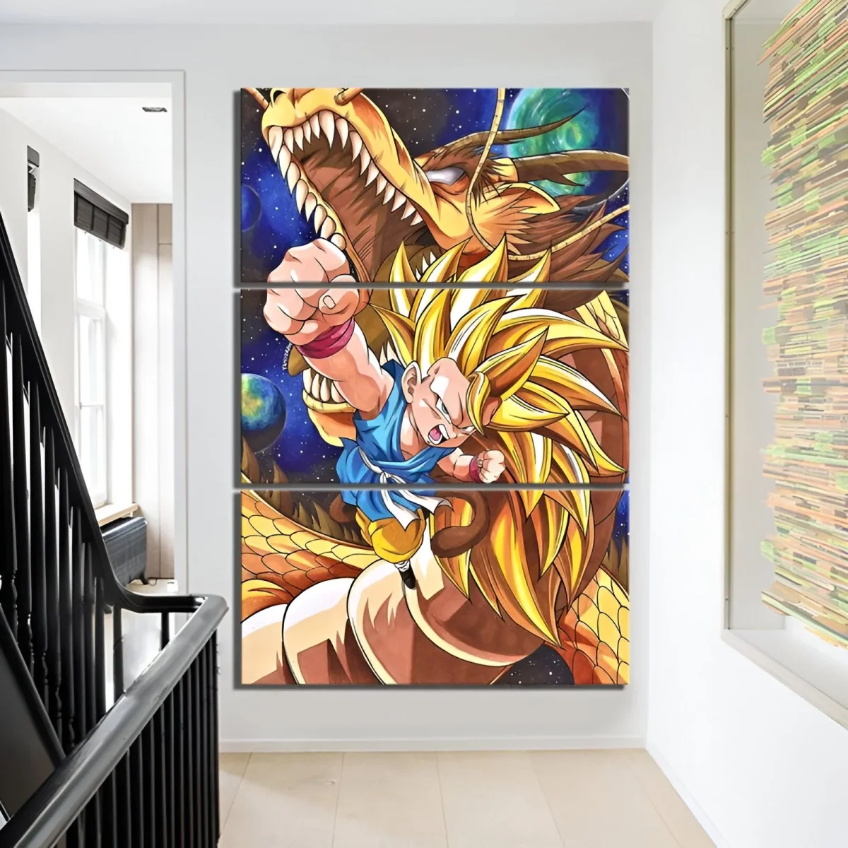 Le tableau met en lumière la transformation Super Saiyan 3 de Goku, une démonstration de force et de volonté. Les mèches dorées, l’aura explosive, tout concourt à traduire l’énergie brute émanant du personnage. Le poing tendu, prêt à frapper, incarne l’esprit combatif propre à Goku et à l’ensemble des Saiyans. Cette représentation visuelle est un rappel constant des défis surmontés par le héros, incitant à la persévérance. L’intensité dans le regard du héros ne fait qu’amplifier l’effet de cette transformation puissante.