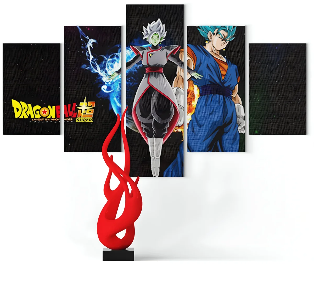 Plongez dans l’univers de Dragon Ball Super avec ce tableau captivant mettant en scène le redoutable Zamasu Fusionné. Cette œuvre d’art, divisée en cinq panneaux, capture toute la puissance et l’arrogance de ce Kaiô divin, opposé à la détermination du guerrier Vegito Super Saiyan Blue. Un objet de décoration idéal pour les fans, ce tableau apportera une touche de l’intensité des combats épiques de Dragon Ball à votre intérieur, en évoquant la grandeur et la menace de l’arc Trunks du futur.