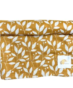 Couverture mousseline de coton – Feuillage blanc moutarde