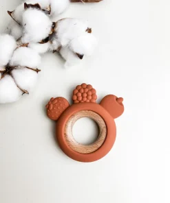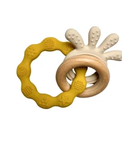Jouet de dentition bois – Bois & pieuvre moutarde