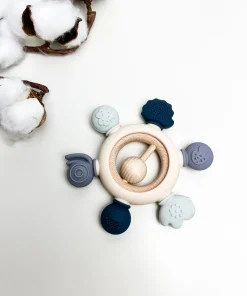 Jouet de dentition bois – Bois & pieuvre emeraude